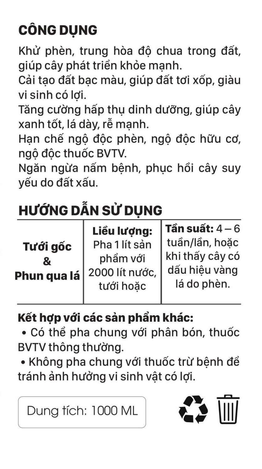- Tần suất: Định kỳ 4-6 tuần/lần, hoặc khi thấy cây có dấu hiệu vàng lá do phèn.